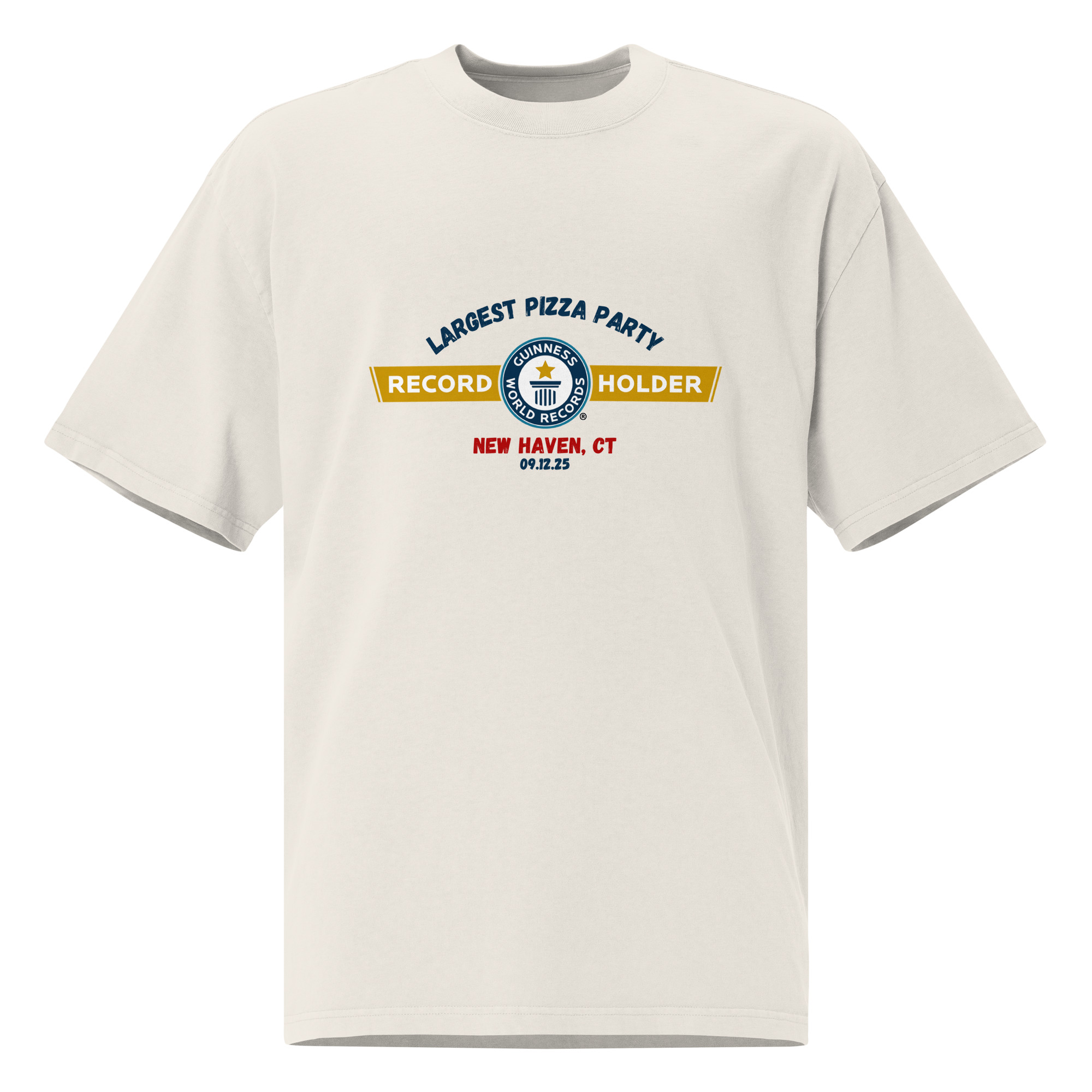 The Pizza State Inc. is the ONLY company authorized to sell Guinness World Record Holder merchandise for the Largest Pizza Party in the World (New Haven, CT – Sept 12, 2025). Every item you buy here is 100% official and directly tied to this record-breaking event.