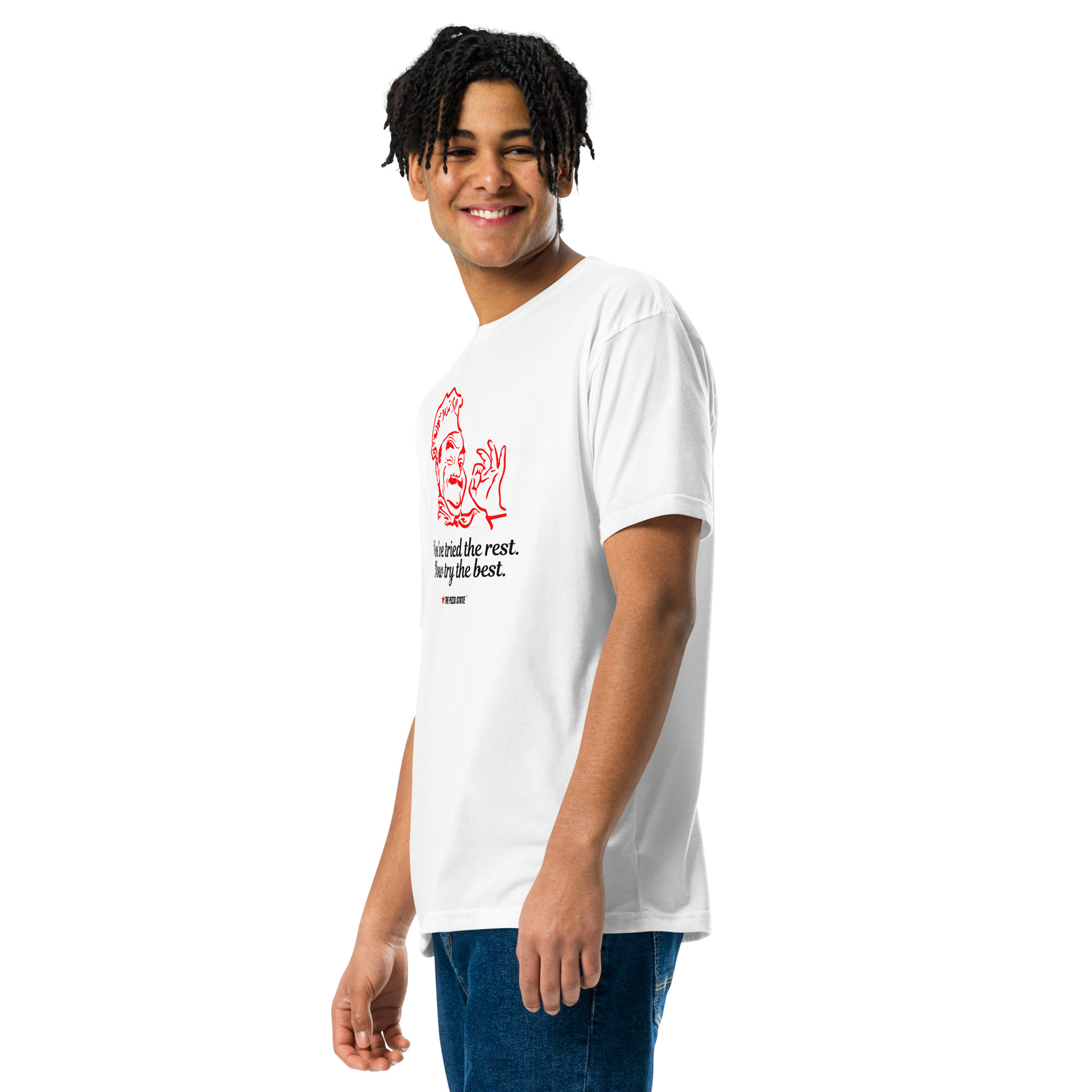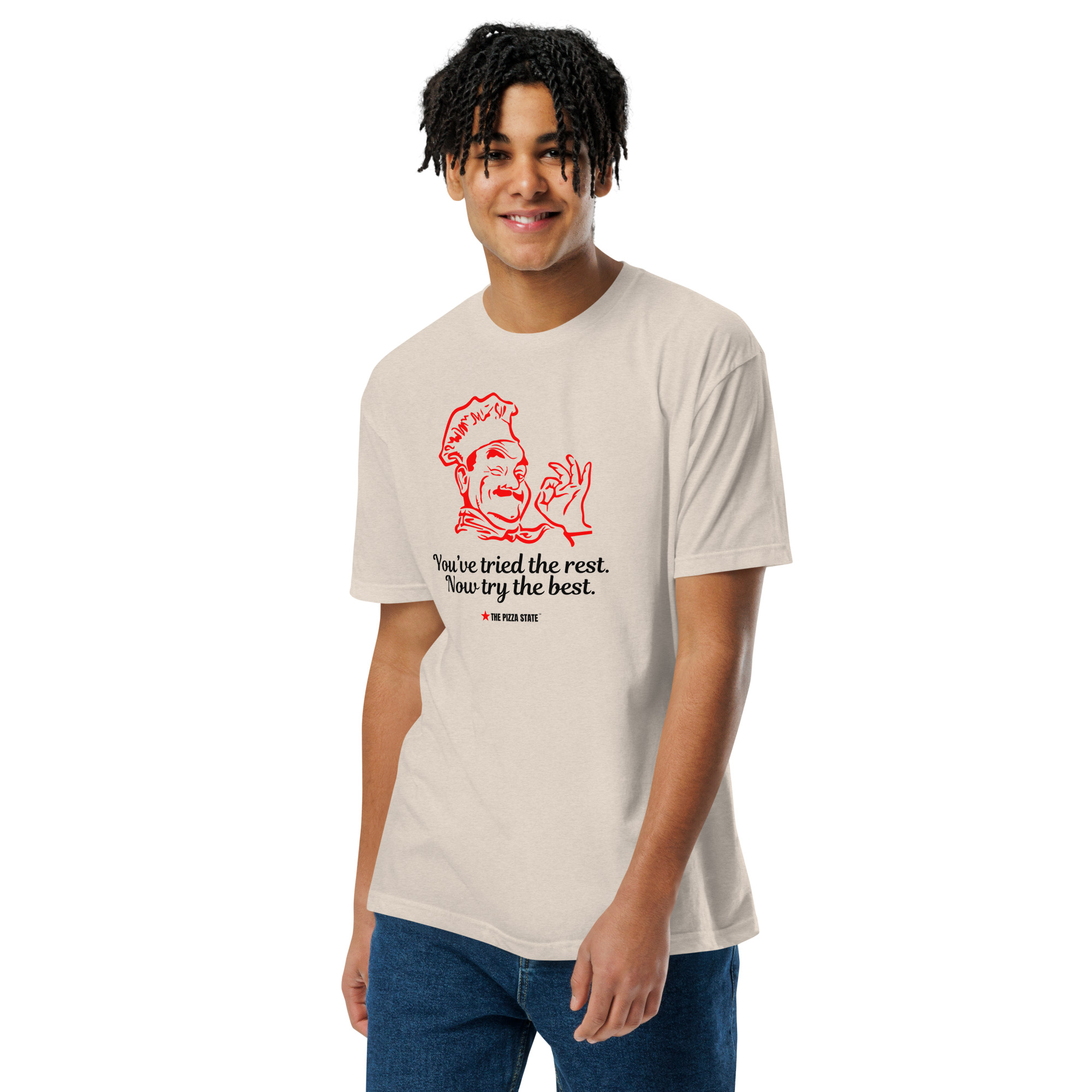 This fitted t-shirt delivers a soft feel with a clean, modern look. Made from a cotton-poly blend, it’s lightweight, breathable, and built to hold its shape and color over time. Whether worn on its own or layered, it’s an easy everyday staple.